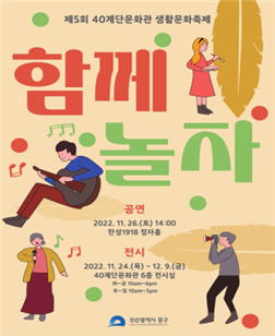 2016년 시작한 ‘40계단문화관 생활문화축제’는 코로나19로 인해 2년 동안 개최되어 오지 못하다가 올해 다섯 번째로 열린다.