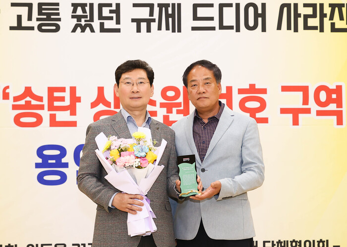이상일 시장은 "감사패를 주신 뜻을 잘 헤아려 더 열심히 일 하겠다"며 "이번 협약을 통해 해제하기로 한 송탄 상수원보호구역은 이동·남사읍 국가산단 계획 승인이 이뤄지면 해제가 되는데 행정절차가 있어서 해제 시기는 내년 봄쯤으로 예상되나 시기를 앞당기는 노력을 전개할 것"이라고 했다.