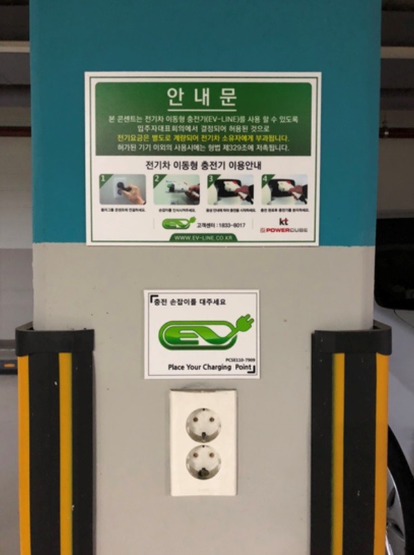 또, 전기요금은 어느 곳의 콘센트를 사용하더라도 전기차를 충전하는 개인에게 부과되기 때문에 아파트관리사무소나 타 입주민에게는 불이익이나 불편사항이 없다.