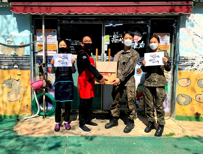 25일 첫 운동을 펼친 해군정보단은 이날 90여 인분의 음식을 주문했으며, 사회적 거리두기, 예방수칙 등을 준수한 가운데 부서별로 점심을 먹으며 소통의 시간을 가졌다.