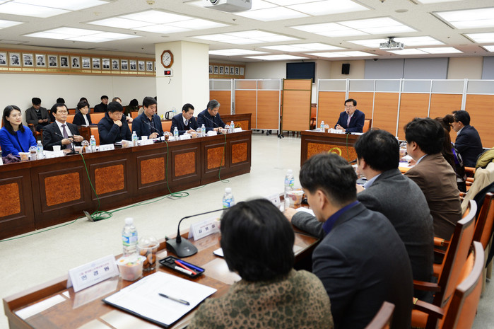 ▲28일 오후4시 동대문구청 기획상황실에서 유덕열 동대문구청장이 ‘동대문구 자살예방협의회’를 주재하고 있다.(동대문구청 제공) |