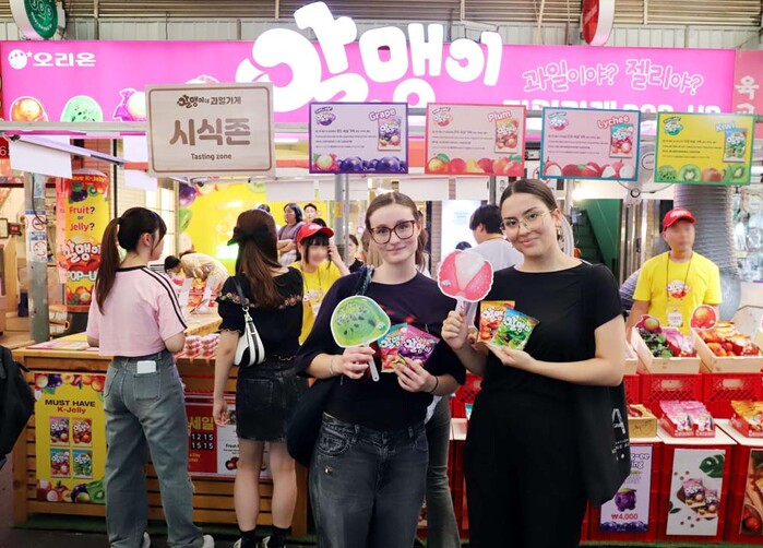 ▲오리온 ‘알맹이네 과일가게’ 외국인 관광객. 오리온 제공 |