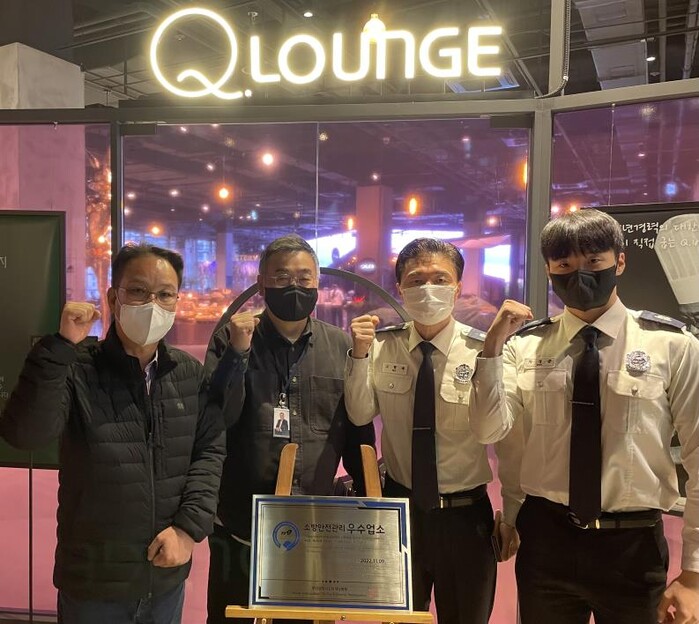 [로컬세계=맹화찬 기자]부산진소방서는 지난 22일 부산진구 소재 ‘Q라운지(삼정타워)’를 2022년도 안전관리 우수 다중이용업소로 선정하고 우수업소 인증 현판 전달식을 가졌다고 밝혔다.