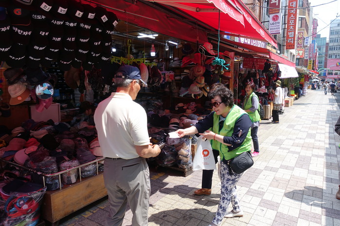 [로컬세계 맹화찬 기자]국민건강보험공단 부산중부지사는 지난 21일 부산 국제시장에서 한국부인회 부산광역시지부와 합동 캠페인을 전개해 국제시장을 방문한 시민을 대상으로 공단의 윤리경영 실천 의지를 피력하고, 건강보험증 부정사용 방지를 위한 홍보를 실시했다.
