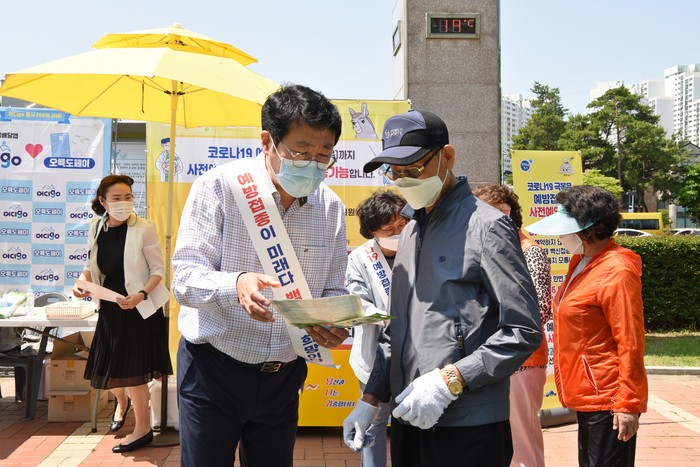 박재범 남구청장과 직원들은 지난 30일 일요일을 맞아 공원을 찾은많은 주민들을 대상으로 코로나19 예방접종 사전예약 안내문을 직접 나눠주면서 사전예약을 당부했다.