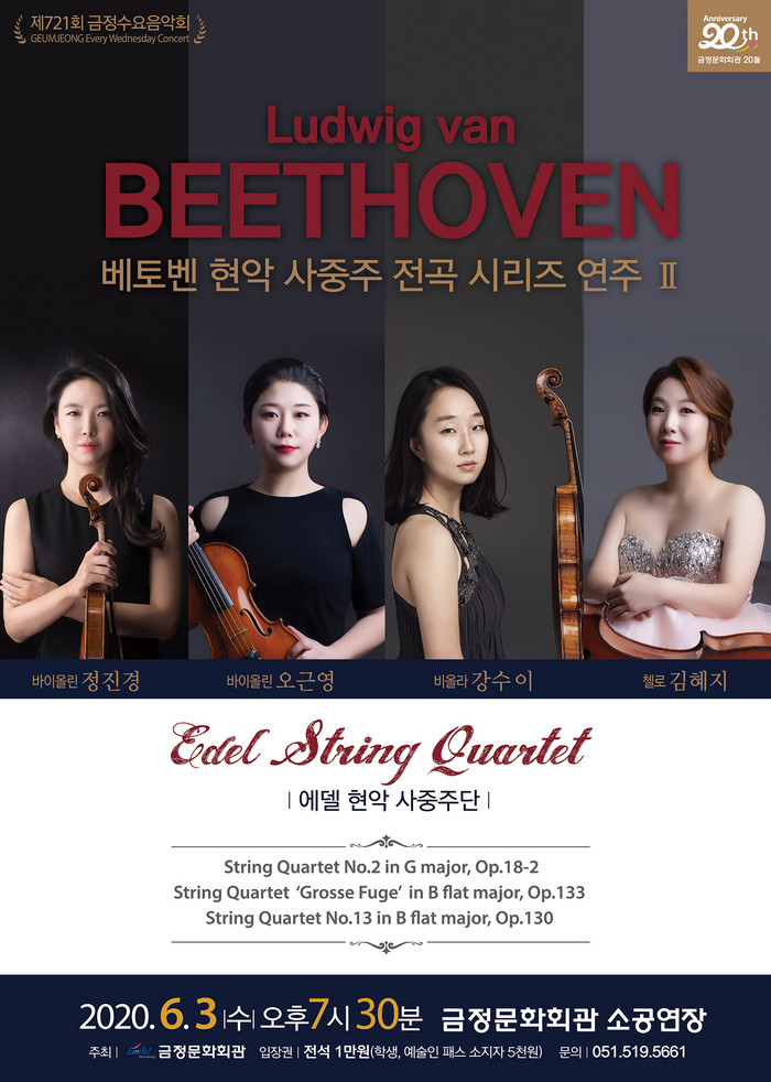 이날 공연은 부산로얄필하모니오케스트라 악장과 수석인 바이올린 정진경, 오근영, 비올라 강수이, 첼로 김혜지로 구성된 에델 현악 사중주단이 베토벤의 곡들로 채운다.