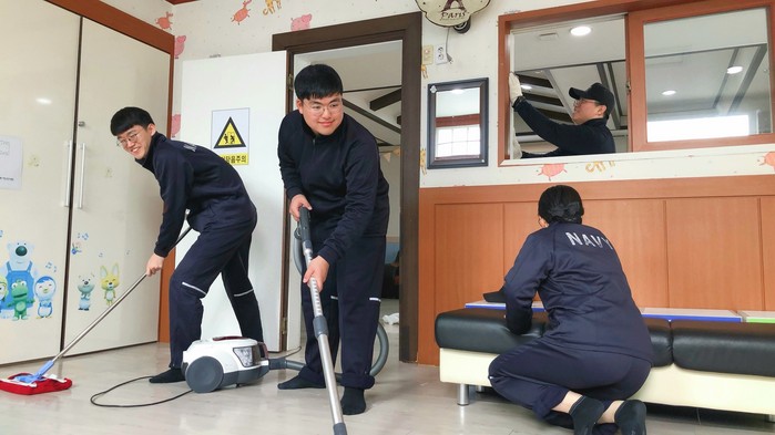 | ▲17일 서애류성룡함 장병들이 진해재활원에서 봉사활동을 펼치고 있다.(해군작전사령부 제공) |
