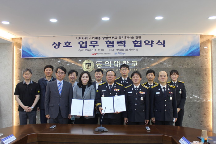 [로컬세계 맹화찬 기자]부산진소방서와 동의대학교는 3일 동의대학교에서 회의실에서 지역사회 소외계층의 안전과 복지향상을 위해 업무협약을 체결했다고 밝혔다.