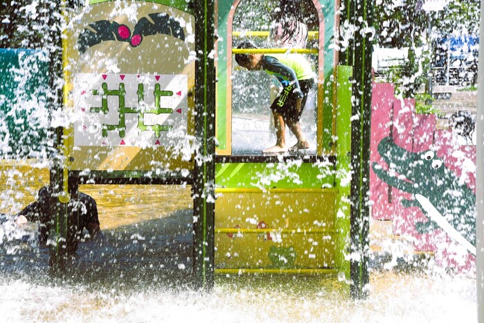[로컬세계=김영호 기자] 폭포수처럼 시원하게 쏟아지는 물줄기에 여름 더위를 날려버리는 어린이들의 기분 좋은 웃음소리가 옥구공원 안을 가득 메우고 있다.