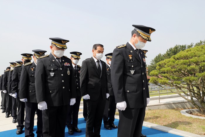 이날 충혼탑 참배에는 구자영 남해해경청장을 비롯한 각 과장, 부산해양경찰서장, 중앙해양특수구조단장 및 해양경찰정비창장 등 해양경찰 지휘부 22명이 참석했다.