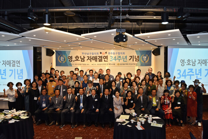 [로컬세계 부산=맹화찬 기자]바르게살기운동 부산 남구협의회와 광주 동구협의회는 지난 27일 문현동 호포갈비에서 영‧호남 자매결연 34주년 기념식과 화합한마당 행사를 개최했다.