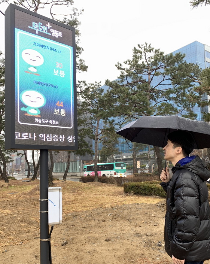 [로컬세계 임종환 기자]서울 영등포구가 지역 내 유동인구가 많은 장소에 ‘미세먼지 미디어보드’를 설치, 미세먼지 및 기상 정보를 주민들에게 신속 정확하게 제공한다.