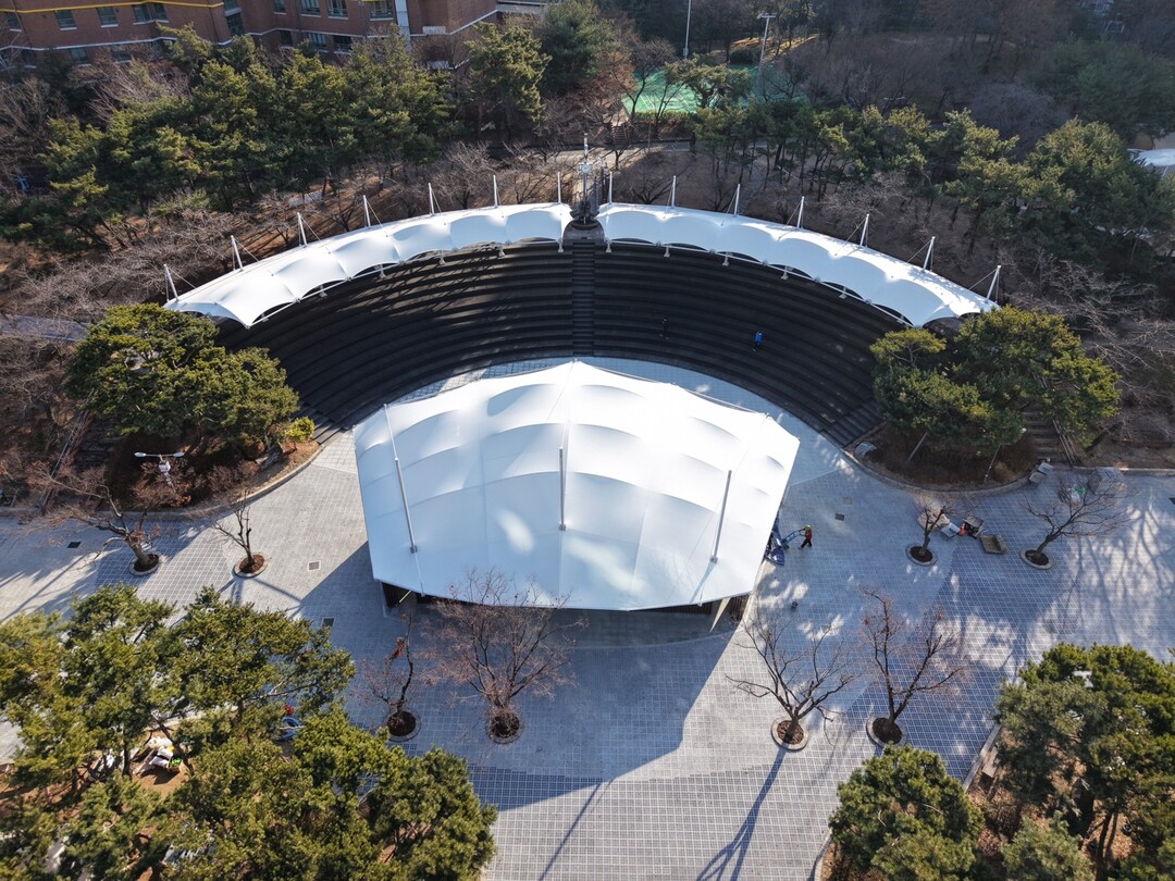 정비를 통해 무대는 디자인 가벽과 막구조 지붕 형태로 새롭게 조성돼 공연 소음 저감 효과가 기대된다. 객석에는 그늘막과 앉음 덱을 설치하고 수국을 식재해 쾌적한 관람 환경을 마련했다.