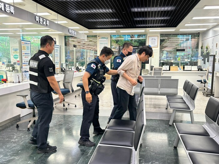 이번 훈련은 민원인의 폭언ㆍ폭행ㆍ기물파손 등의 상황을 가정해 ‘민원인의 위법행위 대응 지침’에 따른 단계별 훈련을 진행했다. 훈련 내용은 ▲민원인 진정 유도 ▲민원인 경고 및 위법행위에 대한 녹음ㆍ녹화 실시 ▲피해공무원 보호 및 방문 민원인 대피 ▲안전요원 호출 및 경찰 신고(비상벨) ▲경찰 인계 등으로 이뤄졌다.