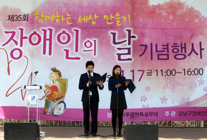 강남구가 주최하고 (사)한국지체장애인협회 강남구 지회가 주관하는 행사는 길거리 공연단의 국악, 마술, 노래 공연과 국민가수 태진아, 영조, 자유 등의 식전공연에 이어 개회 선언과 국민의례, 내빈 소개, 모범 장애인과 자원봉사자 등 유공자 16명 표창이 이어진다.