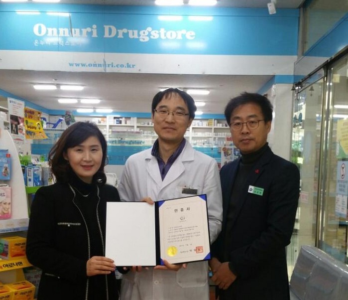 ▲올해 인증받은 온누리 약국 인증서 전달 모습.(영등포구청 제공) |