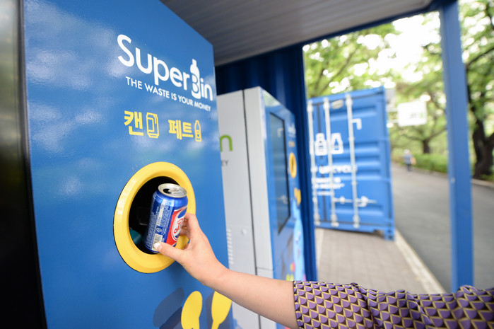 재활용이 가능한 캔이나 페트병을 투입하면 품목별로 분류해 수거하고 휴대폰 번호로 포인트로 적립도 해준다. 캔은 15원, 페트병은 10원으로 포인트가 모여 2000점 이상이 되면 현금으로 이용도 가능하다.