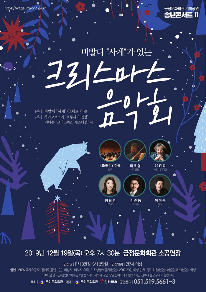 지난 3일 열린 '주현미 소극장 콘서트'에 이은 송년 콘서트 두 번째 무대는 오는 19일 오후 7시 30분에 열리는 '비발디 “사계”가 있는 크리스마스 음악회'이다.