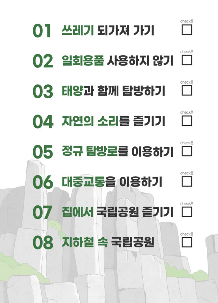 ‘나의 작은 실천이 지구를 지킨다’라는 의미를 담은 이번 프로젝트는 탐방객이 무등산국립공원을 방문해 다이어리 북의 과제를 스스로 수행하면서 자연스럽게 탄소중립을 실천하고 탄소중립의 필요성을 체감할 수 있게 구성했다.