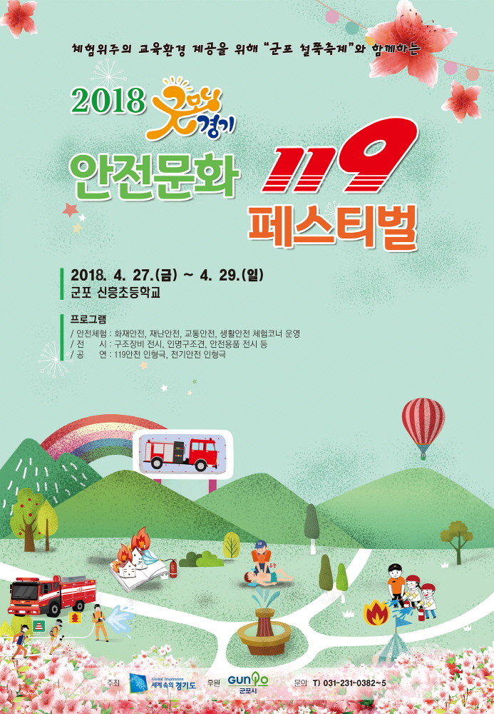 재난안전본부 관계자는 “올해로 4회째를 맞는 이번 2018 굿모닝 경기 안전문화 119페스티벌은 군포 철쭉축제와 함께해 더 많은 볼거리와 체험코너가 준비돼 있다”면서 “화창한 봄날 가족과 함께 안전도 배우고 즐거운 추억도 만들 수 있는 자리가 될 것”이라고 말했다.
