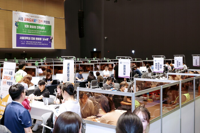 행사에서는 1대1 맞춤형 진학 상담과 학부모 특강이 진행됐으며, 서울대, 연세대, 고려대 등 인기 대학을 포함해 시흥시에서 진학 비율이 높은 42개 대학의 입학사정관 대학 상담 부스도 운영됐다.