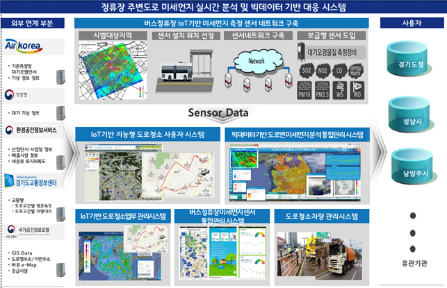 이 사업은 버스정류장 주변에 미세먼지 데이터를 실시간 모니터링 할 수 있는 IoT 기반의 간이측정센서를 설치, 빅데이터 분석을 통해 도로청소 차량을 효율적으로 운행하는 등의 조치를 취함으로써 미세먼지를 줄이는 프로젝트이다.