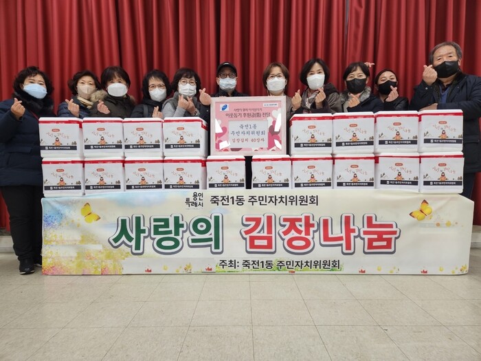 [로컬세계=김병민 기자]경기 용인특례시 수지구 죽전1동은 주민자치위원회(위원장 최재만)가 취약계층 이웃에게 전해달라며 김장김치(5kg) 40박스를 기탁했다고 8일 밝혔다.