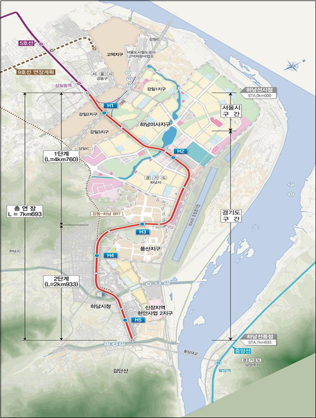 ◆하남선 복선전철 건설공사 노선도
