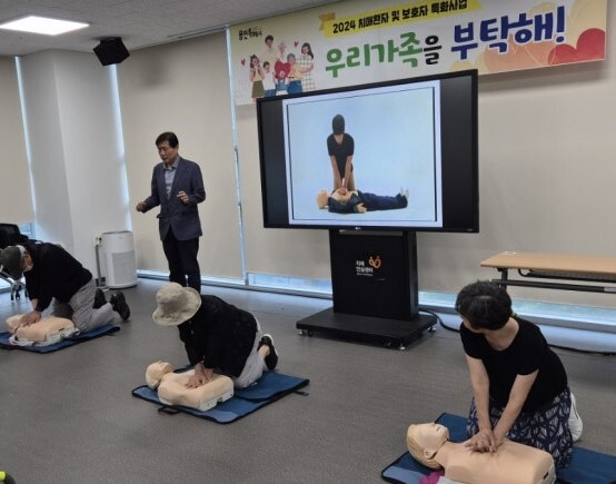 ▲ 용인특례시 수지구보건소가 진행한 '우리가족을 부탁해' 프로그램에서 진행된 심폐소생술 실습 교육. 용인시 제공 |