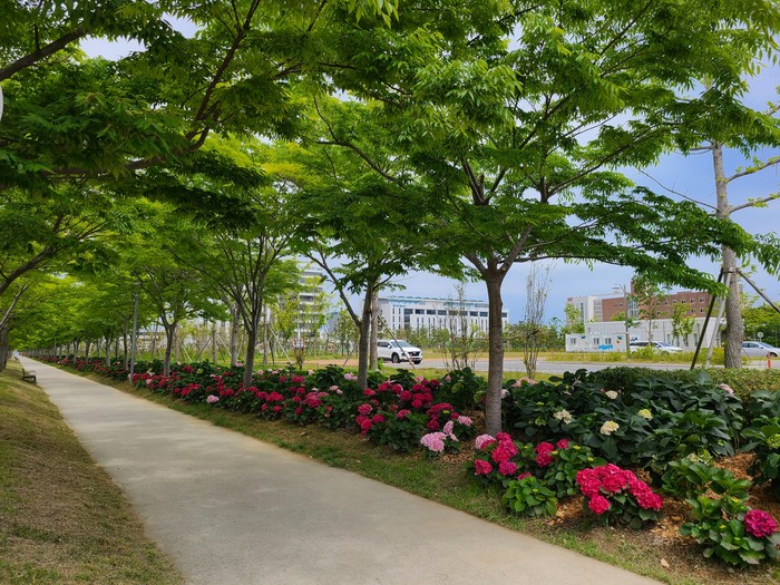 영도구는 이에 착안해 지난 4월 동삼동 아미르공원의 350m에 달하는 구간에 다양한 품종의 수국을 식재하였으며, 본격적으로 수국이 만개하는 6월~7월에는 바다와 수국을 함께 즐길 수 있는 수국명소로 탄생할 예정이다.