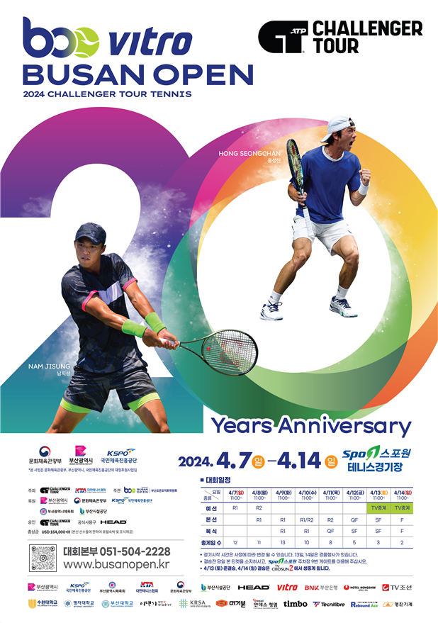 1999년 국내대회 개최 후 올해로 24주년을 맞는 ‘부산오픈’은 세계 남자챌린저대회 중에서도 최상위급에 속하는 챌린저 125급 대회다.