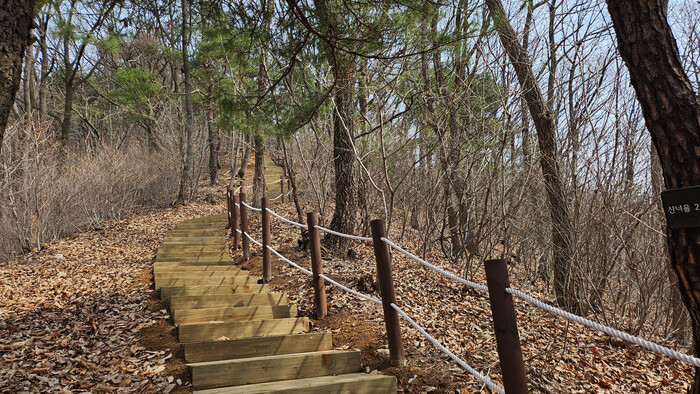 목재계단, 안전로프 등을 설치하고 종합안내판, 방향안내 이정표를 정비한 이번 숲길 공사는 지난달 착공해 이달 중순 마무리됐다.