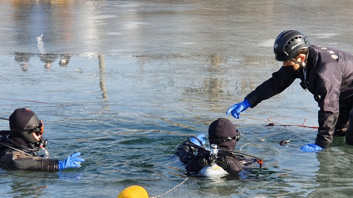 세부적으로는 △대원 안전사고 방지를 위한 입‧출수구 확보 △ 빙상용 썰매 운용 △ 수색라인 설치와 탐색로 설정 등이다. 특히 얼음 아래 수색 활동은 시야 확보가 어렵고 구조대원 또한 안전사고 위험이 있기 때문에 대원 간 유기적인 협력을 통해 팀 단위 전술을 집중적으로 훈련했다.
