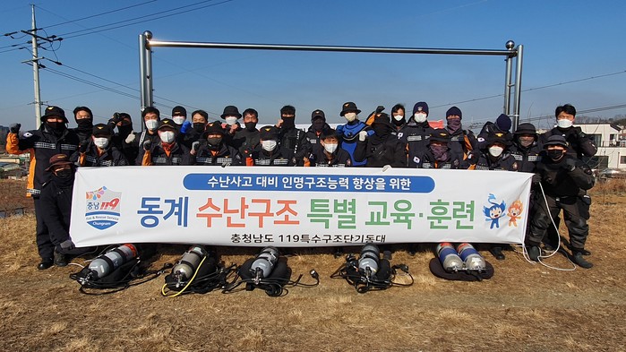 [로컬세계 최홍삼 기자]충남소방본부 119특수구조단은 천안시 서북구 입장면 입장저수지에서 겨울철 내수면 수난사고 대응능력 강화를 위한 ‘동계수난구조 특별훈련’을 실시했다고 29일 밝혔다.