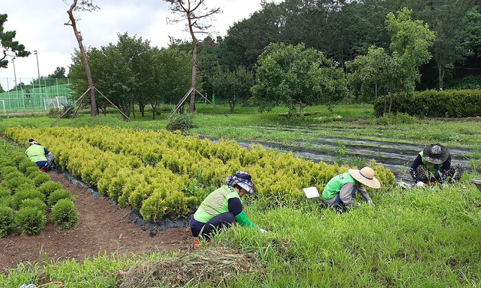 ▲ 성남시 지역공동체 일자리 중 하나인 전지부산물 파쇄 및 무궁화 보급 사업(여수동) / 성남시 제공 |
