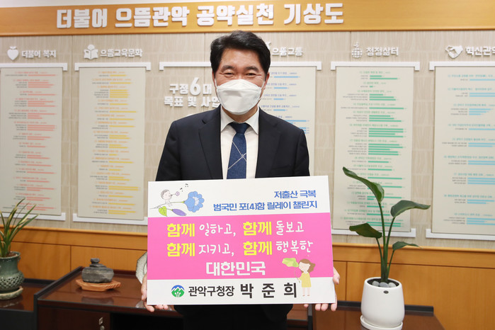 [로컬세계 임종환 기자]박준희 서울 관악구청장이 22일 ‘저출산 극복 함께해요! 범국민 포(4)함 릴레이’ 챌린지에 동참했다.