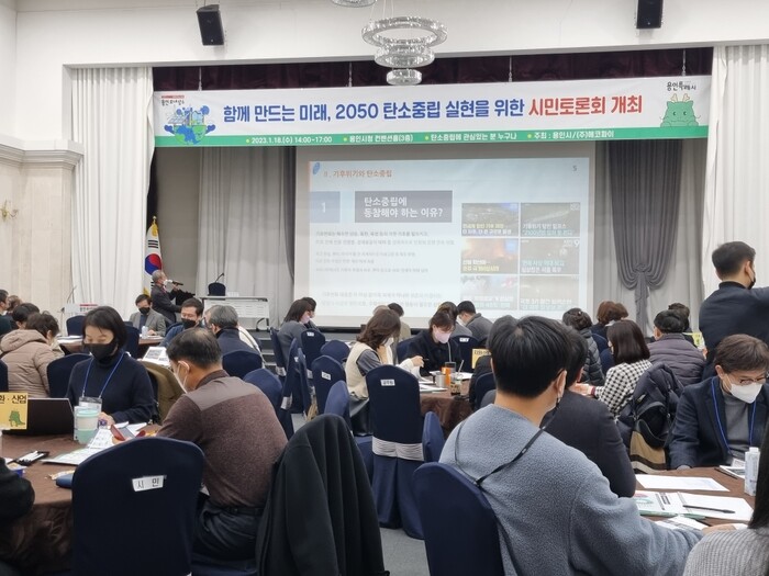 경기 용인특례시가 지난 18일 시 컨벤션홀에서 개최한 ‘2050 탄소중립 실현을 위한 시민토론회’에 80여 명의 시민들이 참여해 다양한 아이디어를 쏟아냈다.