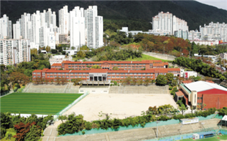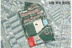 ▲학교복합시설에 도서관 주차장 복합체육시설 등이 포함될 예정인 개성고 전경. 부산시 제공 |