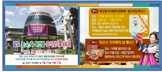 이번 행사를 통해 판매되는 익산시 농식품은 직거래장터가 끝난 후에도 가락몰 4관(2층)인 팔도마당 홍보·판매관에서 지속적으로 판매된다. 이곳에는 지역 내 26개 업체 100여개의 품목이 전시 판매되고 있다.