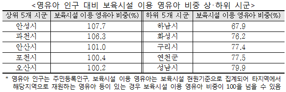 다만, 시군별로 여전히 보육시설 이용률 격차가 존재하는 점은 개선이 필요한 것으로 분석됐다.