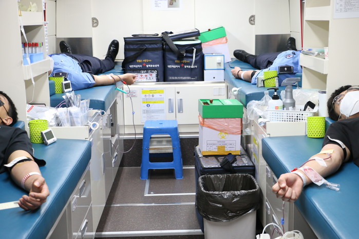 이는 대한적십자사와 협력해 헌혈버스가 부산해양경찰서로 찾아오는 방식으로, 이날 오후 1시 30분부터 4시까지 실시했으며, 헌혈 참여자는 마스크 착용, 사전 체온 측정, 손소독 등 코로나 19 예방 수칙을 철저히 준수하여 헌혈에 임했다.