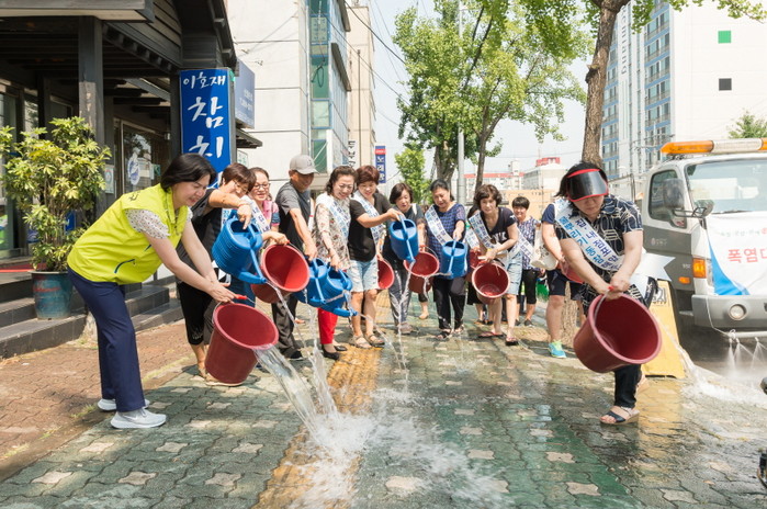 구는 도심 열섬화를 방지하기 위해 물청소차, 제설차량, 살수차량을 활용해 물청소를 실시하고 있다. 이와 더불어 폭염특보 해지 시까지 주민들과 함께하는 '내 집 내 점포 앞 물 뿌리기' 사업을 실시한다.