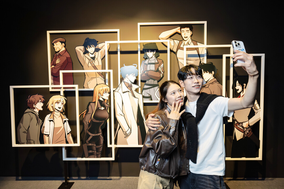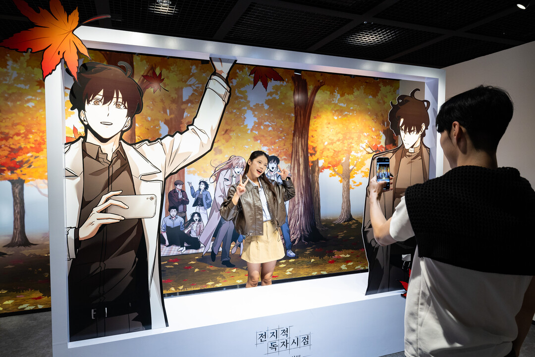 ‘전지적 독자 시점’ 포토존에서 사진 촬영하는 관람객