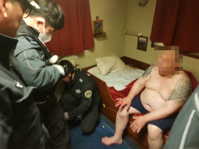 | ▲부산해경 러시아 선내 난동자 살인미수로 긴급체포.(부산해양경찰서 제공) |