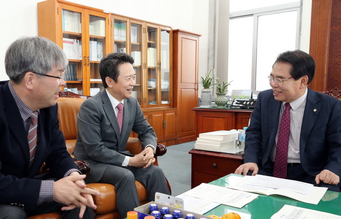 | ▲지난달 17일 국회 백재현 예결소위원장을 만나 면담한 남경필 도지사.(경기도 제공) |