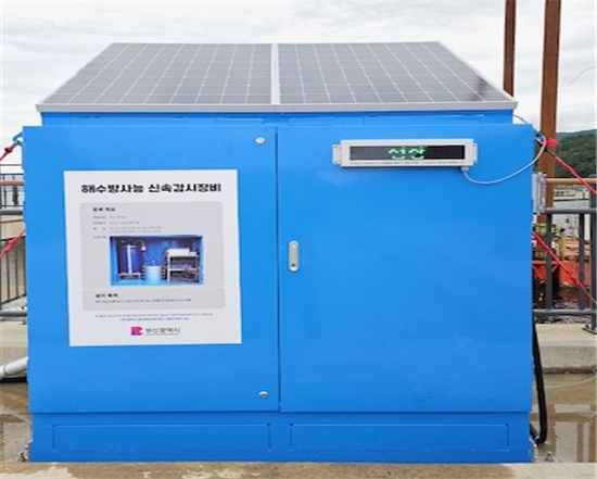 ▲ 고정형 해수 방사능 신속무인감시망(천성항 방파제). 부산시 제공 |