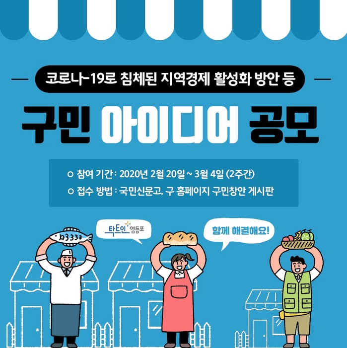 [로컬세계 임종환 기자]서울 영등포구가 주민들의 창의적인 아이디어를 공모해 정책에 반영하는 ‘2020년 구민·공무원 제안제도’를 운영하며, 소통과 협치로 구정 완성도를 더욱 높인다.
