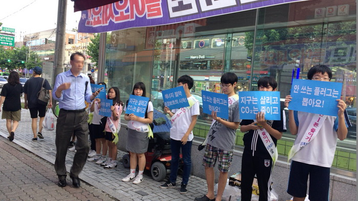 ▲지난해 환경캠페인을 펼치고 있는 청소년들. |