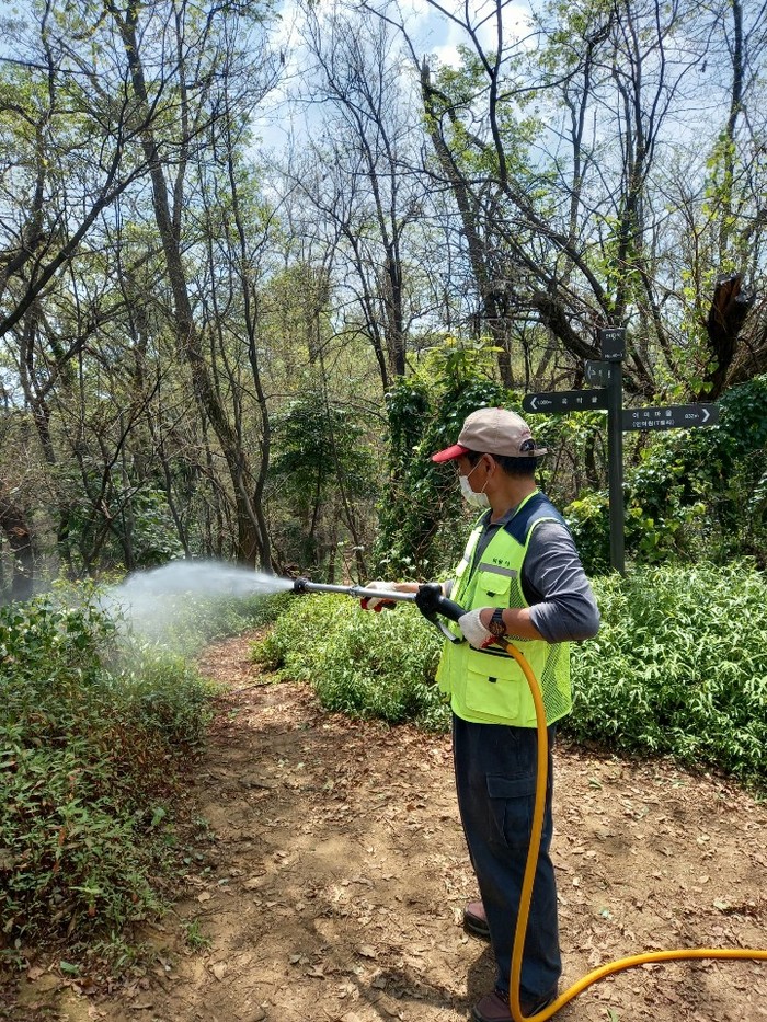 끈끈이롤 트랩 설치, 털어 잡기 등 주변 환경 영향을 고려한 생활사별 맞춤형 방제로 등산객 피해를 최소화 할 방침이다.