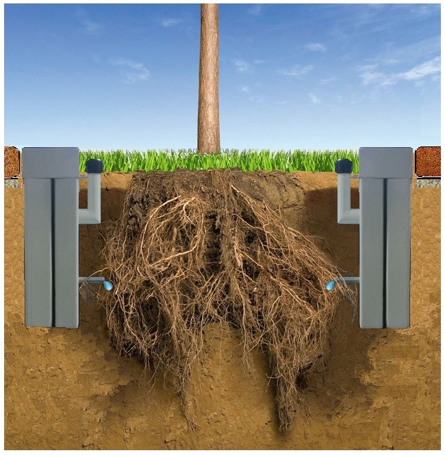점적관수 공법은 나무뿌리 주변에 물 저장고를 설치해 가뭄이 들었을 때도 소량의 물이 뿌리에 지속해서 공급될 수 있도록 하는 방법이다. 시는 가로수를 심은 땅속에 빗물을 모을 수 있는 저장고를 설치해 별도의 관개작업이 필요 없도록 했다.